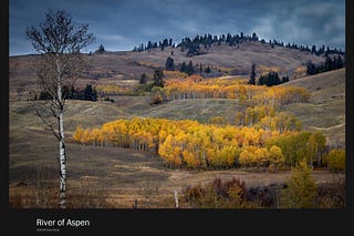 Aspen trees flow down the hillside in their golden autumn splendor.